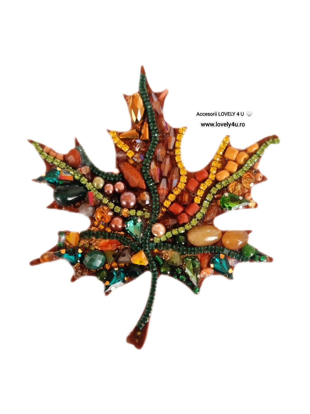 Realizată manual în România, cu măiestrie, pasiune și respect pentru detaliu, broșa frunza devine o extensie a sufletului tău.