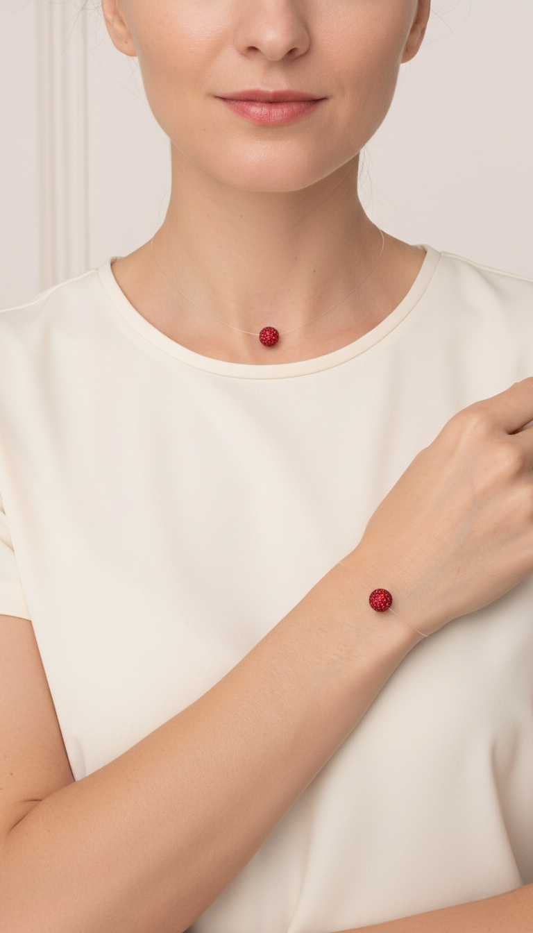 FLOATING PEARL # Shamballa – AURA SET Colier & brățară cu perlă plutitoare pe fir invizibil