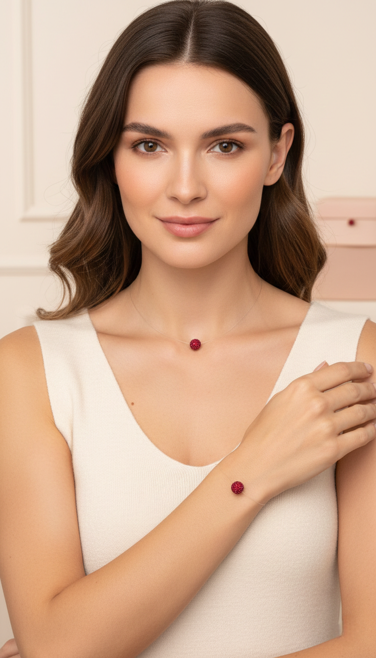 Perla Shamballa simbolizează echilibrul interior, protecția și liniștea sufletească. În acest set, ea devine un talisman modern – un memento al iubirii de sine, al grației și al forței blânde.